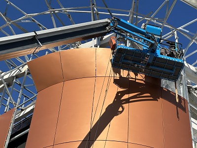 curved aluminum panel, used as facade system in a curtain wall system.